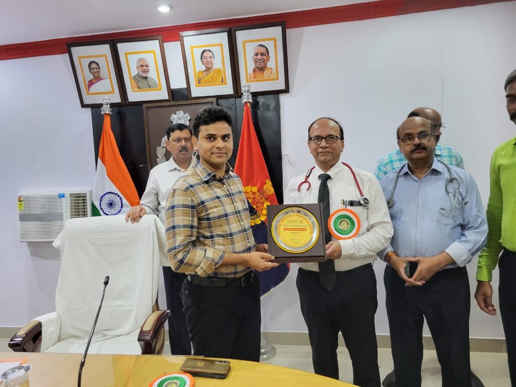 लखनऊ।रोटरी क्लब बलरामपुर एवम् हार्ट एंड ।मल्टीस्पेशलिटी हॉस्पिटल लखनऊ के संयुक्त तत्वावधान में एक नि:शुल्क स्वास्थ्य चिकित्सा शिविर रिजर्व पुलिस लाइन बलरामपुर में आयोजित किया गया ,इस नि:शुल्क कैंप में वरिष्ठ हृदय रोग विशेषज्ञ डा पंकज श्रीवास्तव,डा मुकेश श्रीवास्तव, डा अब्दुल्ला ,डा वाई पी गुप्ता ,डा कौशल्या डा शशांक, डा प्रांजल त्रिपाठी , डा डा महेश वर्मा ने मिल कर 150 मरीजों का ईसीजी, ब्लड शुगर एव परामर्श दिया गया। कैंप का उद्घाटन पुलिस अधीक्षक विकास कुमार ने फीता काटकर किया पुलिस अधीक्षक ने अपने संबोधन में कहां की चरक हार्ट इंस्टिट्यूट एंड मल्टीस्पेशलिटी हॉस्पिटल लखनऊ एव रोटरी क्लब बलरामपुर ने मिलकर एव चरक हार्ट हॉस्पिटल से आए डॉ पंकज कुमार श्रीवास्तव का आभार व्यक्त करते हुए कहा यह एक पुनीत कार्य है जो हमारे विभाग के परिवार के लोगों का नि:शुल्क परामर्श का कार्य किया है बहुत ही सराहनीय कार्य है। वरिष्ठ कार्डिक सर्जन डॉ पंकज कुमार श्रीवास्तव ने आए हुए लोगों को अपने संबोधन में कहा हृदय रोग से बचने के लिए कम से कम 45 मिनट व्यायाम एवं मॉर्निंग वॉक करना चाहिए खाने में नमक व तेल का सेवन कम करें घी मक्खन तले हुए पदार्थ मांस का सेवन बहुत ही सीमित एवं वसायुक्त मसालेदार व्यंजन से बचना चाहिए जिससे कोलेस्ट्रॉल की मात्रा बढ़ जाती है किसी भी प्रकार के तंबाकू का सेवन करने से भी बचना चाहिए डायबिटीज हाई ब्लड प्रेशर को कंट्रोल में रखना चाहिए अगर किसी भी अनियमित धड़कने तेज हो जाना उल्टी आने का एहसास होना पसीना व चक्कर आना हृदय रोग के कारण हो सकते हैं इसलिए व्यक्ति को जागरूक होकर समय-समय पर जांच करवानी चाहिए रोटरी क्लब अध्यक्ष डॉ अभिषेक सिन्हा ने कहा कि आजकल की भागदौड़ की जिंदगी में लोग स्वास्थ्य पर ध्यान नहीं देते हैं इससे आगे चलकर कई गंभीर बीमारियों का सामना करना पड़ता है अगर सही समय पर व्यक्ति का उपचार हो जाए तो उस व्यक्ति को इस गंभीर बीमारी से बचाया जा सकता है डॉ मुकेश श्रीवास्तव ने कहा कि आज हमारे देश में मधुमेह व हृदय रोग की बीमारी बड़ी तेजी से फैल रही है या बीमारी आजकल युवा वर्गों में अधिक पाई जा रही है इसीलिए ऐसे लोगों को इस गम्भीर बीमारी से बचाने के लिए लोगों को जागरूक होना चाहिए सचिव राजन श्रीवास्तव ने कहा कि संस्था के साथ समय समय पर ऐसे नि:शुल्क कैंप लगाकर लोगों को जागरूक करने का काम किया जाएगा डॉ वाई पी गुप्ता ने कहा की स्वस्थ मनुष्य पर स्वस्थ मस्तिष्क निवास करता है इसलिए प्रत्येक व्यक्ति को स्वास्थ्य पर ध्यान देना चाहिए। कैंप में वृहद स्तर पर वृक्षारोपण किया गया है , कैंप को सफल बनाने में रोटेरियन अनिल अग्रवाल ,प्रदीप गुप्ता, अनूप सराफ ,सतीश अग्रवाल, राघवेंद्र ,आशीष ,पंकज सिन्