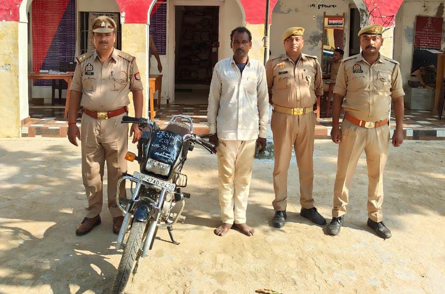 बलरामपुर।पुलिस अधीक्षक बलरामपुर विकास कुमार द्वारा अपराध व अपराधियों के विरुद्ध चलाए जा रहे अभियान के क्रम में अपर पुलिस अधीक्षक उत्तरी योगेश कुमार व क्षेत्राधिकारी ललिया श्रीमती ज्योतिश्री के पर्यवेक्षण में तथा प्रभारी निरीक्षक ललिया बृजानन्द सिंह के कुशल नेतृत्व में आज दिनांक 21.09.2024 को उप निरीक्षक बब्बन यादव मय हमराह हेड कांस्टेबल हरिचन्द्र मिश्र, हेड कांस्टेबल अरविन्द कुमार, कास्टेबल सुनील कुमार देखभाल क्षेत्र व पेंडिग विवेचना के दौरान थाना स्थानीय पर पंजीकृत मु0अ0स0 213/2024 धारा 303(2)/317(2) BNS से सम्बन्धित अभियुक्त को भगता गाँव के पास से गिरफ्तार कर कब्जे से मुकदमा उपरोक्त से सम्बन्धित चोरी का वाहन बरामद कर थाना स्थानीय पर आवश्यक विधिक कार्यवाही करते हुए अभियुक्त को न्यायालय रवाना किया गया।
