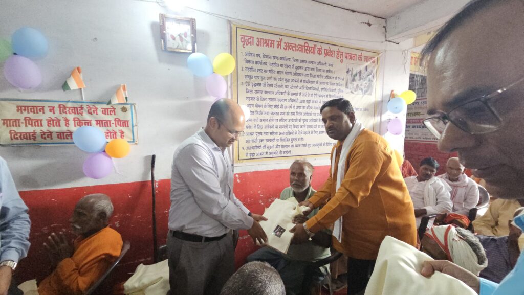 जिलाधिकारी एवं विधायक ने वृद्धाश्रम में वृद्धजनों को कंबल ,शॉल एवं फल आदि का किया वितरण