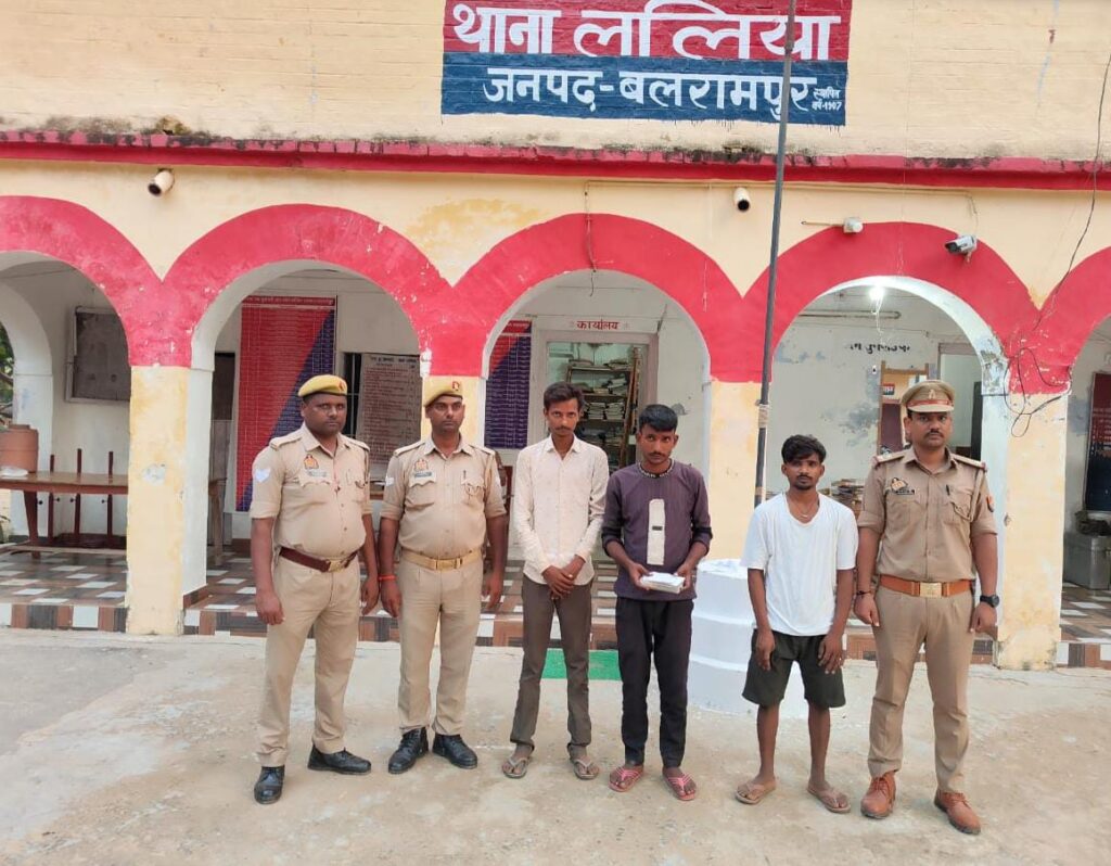 ललिया,बलरामपुर।पुलिस अधीक्षक बलरामपुर विकास कुमार द्वारा अपराध व अपराधियों के विरुद्ध चलाए जा रहे अभियान के क्रम में अपर पुलिस अधीक्षक उत्तरी योगेश कुमार व क्षेत्राधिकारी ललिया श्रीमती ज्योतिश्री के पर्यवेक्षण में तथा प्रभारी निरीक्षक ललिया बृजानन्द सिंह के कुशल नेतृत्व में आज दिनांक 04.10.2024 को उप निरीक्षक अशोक राय मय हमराह उप निरीक्षक अविनाश सिंह, हेड कांस्टेबल चन्द्रशेखर, हेड कांस्टेबल अजय प्रताप यादव, कांस्टेबल मिथलेश मौर्या के साथ देखभाल क्षेत्र, पेंडिग विवेचना में थाना क्षेत्र में मामूर थे कि मुखबिर की सूचना पर नई बस्ती ललिया में आम के बाग में हार जीत की बाजी लगा कर जुआ खेलते हुए 03 अभियुक्तो सलमान पुत्र बाबू निवासी ग्राम मकुनहवा थाना ललिया जनपद बलरामपुर, ननकने चौधरी उर्फ प्रेमसागर पुत्र कामता प्रसाद निवासी ललिया थाना ललिया जनपद बलरामपुर, लालजी विश्वकर्मा पुत्र तीरथ निवासी ग्राम ललिया थाना ललिया जनपद बलरामपुर को गिरफ्तार कर उनके कब्जे से 52 ताश के पत्ते, व 760/- रूपया माल फड, व 260/-रूपया जामा तलाशी रूपया बरामद किया गया । थाना स्थानीय पर अभियुक्तो के विरूद्ध मु0अ0सं0-223/2024 धारा 13 जुआ अधि0 पंजीकृत कर आवश्यक विधिक कार्यवाही की गयी है ।