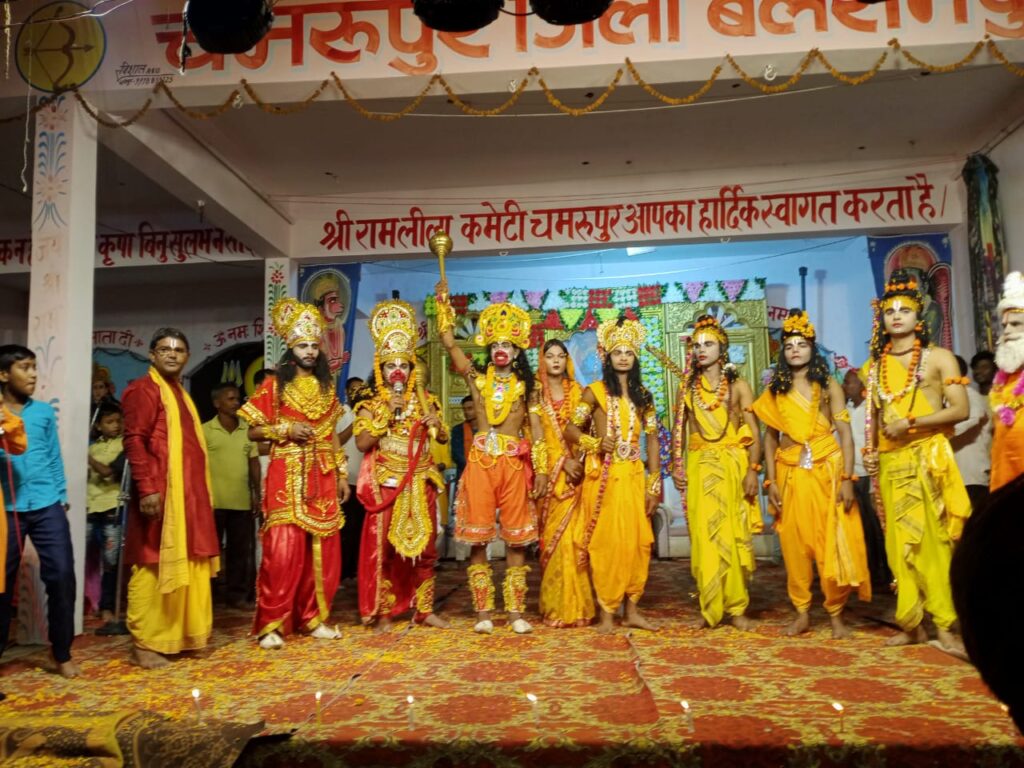 बलरामपुर।भरत मिलाप एवं मर्यादा पुरुषोत्तम भगवान राम के राज्याभिषेक के साथ समाप्त हुई चमरुपुर की रामलीला।चमरुपुर की रामलीला विगत कई वर्षों से उतरौला क्षेत्र में अपने उच्चकोटि की प्रस्तुति के लिए प्रसिद्ध है। क्षेत्रीय कलाकार अपनी शानदार प्रस्तुति से राम लीला को सफल बनाने के लिए सदैव तत्पर रहते हैं। राम लीला का प्रोग्राम 12 दिनों तक चलता है। इस बीच रामलीला आयोजक एवं रामलीला कलाकार अपना सम्पूर्ण कार्य स्थगित करके अपना सम्पूर्ण समय कार्यक्रम को सफल बनाने में लगा देते हैं। यही कारण है कि आज क्षेत्र में चारों ओर चमरुपुर की रामलीला चर्चा का विषय बनी हुई है।रामलीला को सफल बनाने में सर्वाधिक योगदान कमेटी के अध्यक्ष कृष्ण कुमार गुप्ता, कोषाध्यक्ष गुड्डू गुप्ता, ग्राम प्रधान शिव शंकर सैनी, जगदम्बिका प्रसाद गुप्ता ,फूल चन्द्र गुप्ता, राम सरन लोहिया,सोमेश प्रताप गुप्ता ,रोहित कौशल, संदीप कुमार गुप्ता ,आदि कलाकारों को जाता है।