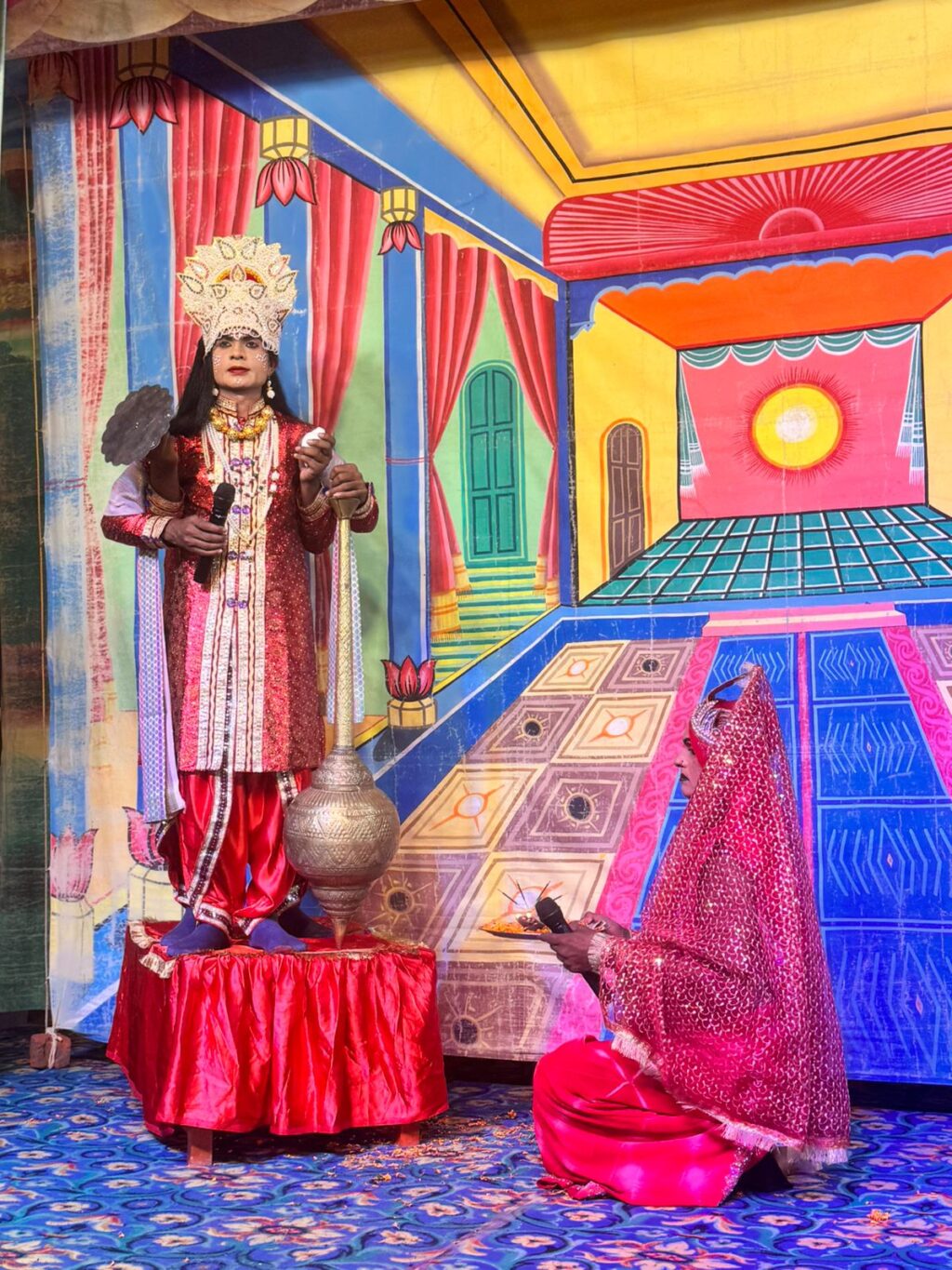 कलाकारों ने दिखाया कि अयोध्या में राजा दशरथ के यहां प्रभु श्री राम का जन्म हुआ है, साथ में भरत, लक्ष्मण और शत्रुघ्न के जन्म से चारों ओर हर्ष और उल्लास का माहौल है। राज दरबार में खुशियां मनायी जा रही है। पूरे नगर में बधाईयाँ बांटी गई।और राजा दशरथ अन्न और धन प्रजा में नौछावर करतें हैं। उधर गुरु विश्वामित्र के आश्रम में राक्षसों द्वारा उत्पात मचाये जाने से सभी परेशान हैं। योग से विशवामि य। यह जान लेते हैं कि धरती पर प्रभु श्री राम का जन्म हुआ है। दानवों से मानव जाति की रक्षा के लिए गुरु विश्वामित्र अयोध्या में जाकर राजा दशरथ से किसी तरह राम और लक्ष्मण लाने में सफल होते हैं।रास्ते में ताड़का सहित अन्य कई आसुरों को परास्त करते हुए दोनों गुरु विश्वामित्र के आश्रम में पहुचते है।इस मौके पर अध्यक्ष राम नेवास यादव, धर्म राज वर्मा, मनीष श्रीवास्तव, राज कुमार गुप्ता, तिलक राम कसौधन, राम तेज कसौधन, कपिल देव गुप्ता, दीपक जायसवाल, संजय कुमार गुप्ता, विद्या सागर गुप्ता, काली प्रसाद, रिषि गुप्ता आदि लोग उपस्थित थे।