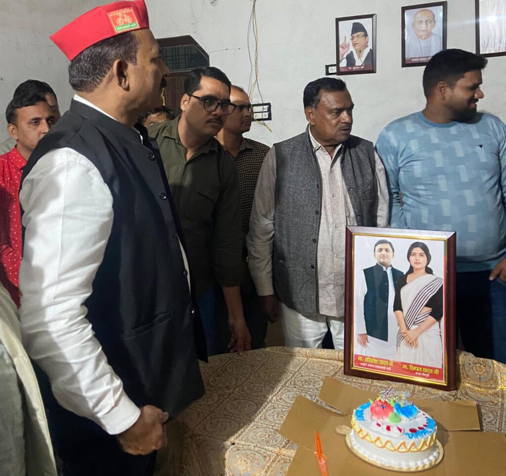 गौरा विधानसभा में सपाइयों ने केक काटकर व फल वितरण कर किया दीर्घायु की कामना