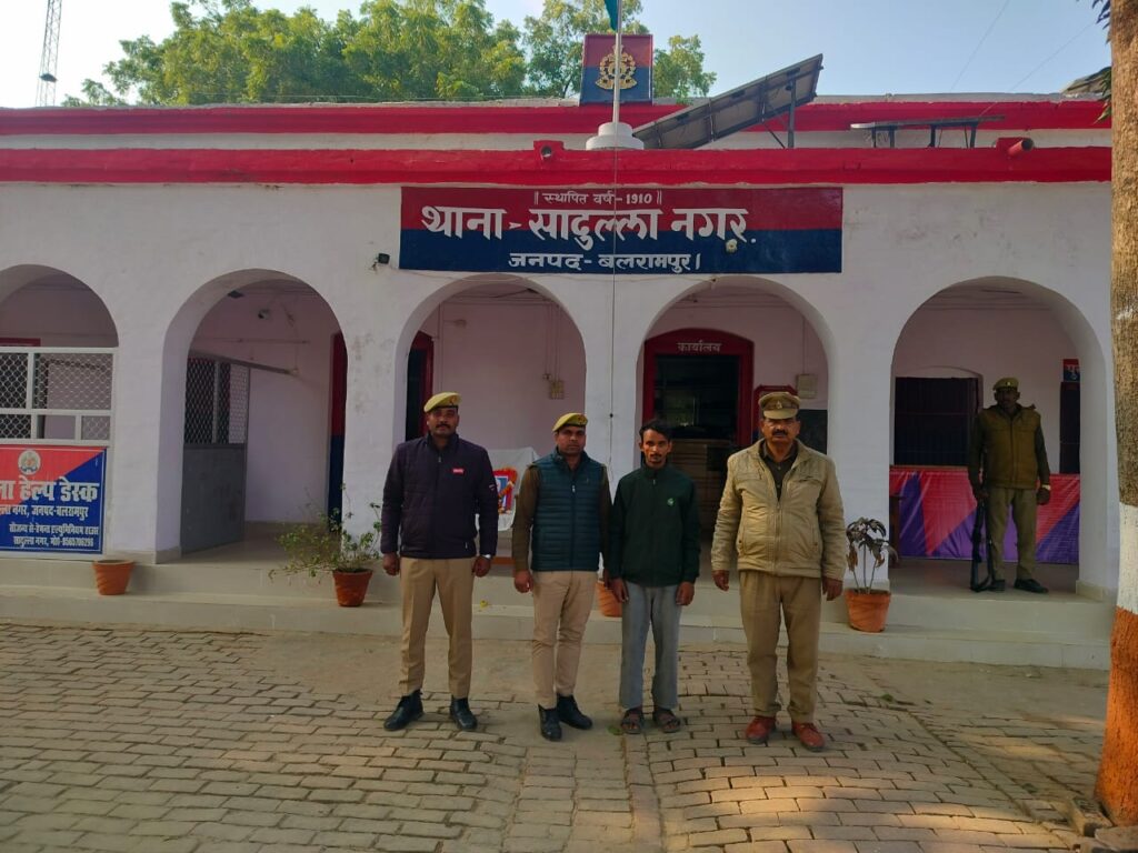 सादुल्लाह नगर, बलरामपुर।पुलिस अधीक्षक बलरामपुर विकास कुमार द्वारा जनपद में अपराध एवं अपराधियों पर प्रभावी नियंत्रण व अपराधों की रोकथाम व चोरी,लूट,डकैती के अपराधियों की गिरफ्तारी हेतु चलाए जा रहे अभियान के क्रम में अपर पुलिस अधीक्षक दक्षिणी श्रीमती नम्रिता श्रीवास्तव व क्षेत्राधिकारी उतरौला श्री राघवेंद्र प्रताप सिंह के पर्यवेक्षण में व प्रभारी निरीक्षक सादुल्लानगर मनोज कुमार सिंह के कुशल नेतृत्व में थाना सादुल्लाह नगर पुलिस टीम द्वारा आज दिनांक 25.12.2024 को मामा की बुलेट मोटरसाइकिल सगे भांजे द्वारा चोरी कर लेने के सम्बन्ध में थाना स्थानीय पर पंजीकृत मु0अ0सं0 101/2024 धारा 303 (2), 317(2) BNS के अभियुक्त जलालुद्दीन उर्फ सुलतान पुत्र अब्दुल सत्तार निवासी ग्राम छितलूपुर थाना सादुल्लानगर जनपद बलरामपुर को गिरफ्तार कर कब्जे से बुलेट मोटर साईकिल रजि0नं0 UP47P6803 को बरामद कर अभियुक्त उपरोक्त को न्यायालय रवाना किया गया ।