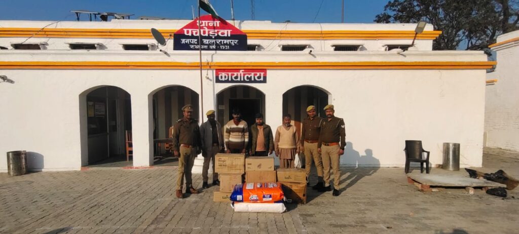 पचपेड़वा, बलरामपुर।दिनांक 02.02.2025 को वादी मुकदमा जमाल अहमद पुत्र बकरीदी निवासी कस्बा पुरानी बाजार पचपेड़वा द्वारा थाना स्थानीय पर सूचना दिया गया कि विगत रात्रि को अज्ञात व्यक्ति द्वारा मेरे दुकान मे घुसकर चोरी कर ली गई है। चोरो द्वारा दुकान से काफी सामान चोरी कर ले गए है जिसके संबंध मे थाना स्थानीय पर मु0अ0स- 24/2025 धारा 331(4)/305ए बी0एन0एस बनाम अज्ञात पजीकृत किया गया था।पुलिस अधीक्षक बलरामपुर विकास कुमार द्वारा उक्त चोरी की घटना के शीघ्र अनावरण व अभियुक्तो की गिरफ्तारी हेतु दिए गए शख्त दिशा-निर्देश के क्रम में अपर पुलिस अधीक्षक उत्तरी योगेश कुमार व क्षेत्राधिकारी तुलसीपुर के पर्यवेक्षण में तथा प्रभारी निरीक्षक सत्येन्द्र बहादुर सिंह थाना पचपेड़वा के कुशल नेतृत्व में आज दिनांक 03.02.2025 को पचपेड़वा पुलिस टीम द्वारा अभियोग पंजीकरण के 24 घण्टे के अन्दर थाना स्थानीय पर पंजीकृत मु0अ0स0 024/2025 धारा 331(4)/305ए बी0एन0एस का सफल अनावरण किया गया।विवेचना के क्रम में घटना स्थल का बारीकी से निरीक्षण, गवाहों के बयान व संकलित साक्ष्यों के आधार पर मुकदमा उपरोक्त के वादी जमाल अहमद पुत्र बकरीदी, अब्दुल तौहीद खां उर्फ रोजन खां पुत्र शाकिर खाँ उर्फ मंगरे निवासी गण निवासीग्राम पुरानी बाजार पचपेड़वा थाना पचपेड़वा जनपद बलरामपुर व आस पास के लोगो से पूछताछ की गयी तो चोरी की घटना होना नही बताया वादी मुकदमा जमाल अहमद से पूछताछ करने पर पाया गया कि दोपहर करीब 11 से 12 बजे के बीच वादी मुकदमा अपने पिता बकरीदी व अब्दुल तौहीद खाँ उर्फ रोजन खां निवासी गण पुरानी बाजार पचपेड़वा थाना पचपेड़वा जनपद बलरामपुर के साथ मिलकर योजना बनाकर चोरी की घटना दिखाकर खुद की दुकान का बीमा में लाभ पाने के लिये गोदाम से 8 से 10 गत्ते का सामान चुराकर अलग दुकान में रख दिया गया तथा कुछ सामान को गोदाम के पीछे पड़ी खाली जमीन में फेंका गया था। वादी मुकदमा(अभियुक्त) व सह अभियुक्त अब्दुल तौहीद खां उर्फ रोजन खां द्वारा अपना जुर्म स्वीकार किया गया।बरामदगी व परिस्थितिजन्य साक्ष्यों के आधार पर अभियुक्तगण जमाल अहमद पुत्र बकरीदी,अब्दुल तौहीद खां उर्फ रोजन खां पुत्र शाकिर खाँ उर्फ मंगरे,बकरीदी पुत्र पीर मोहम्मद निवासीग्राम पुरानी बाजार पचपेड़वा थाना पचपेड़वा जनपद बलरामपुर को पुरानी बाजार थाना मोड़ के पास से नियमानुसार गिरफ्तार किया गया व इन्ही की निशानदेही पर घटना में चोरी कर छिपाकर रखे गये सामान को बरामद किया गया। बरामदगी के आधार पर मुकदमा उपरोक्त में अभियोग में धारा 317(2) बीएनएस की की बढोत्तरी की गई।