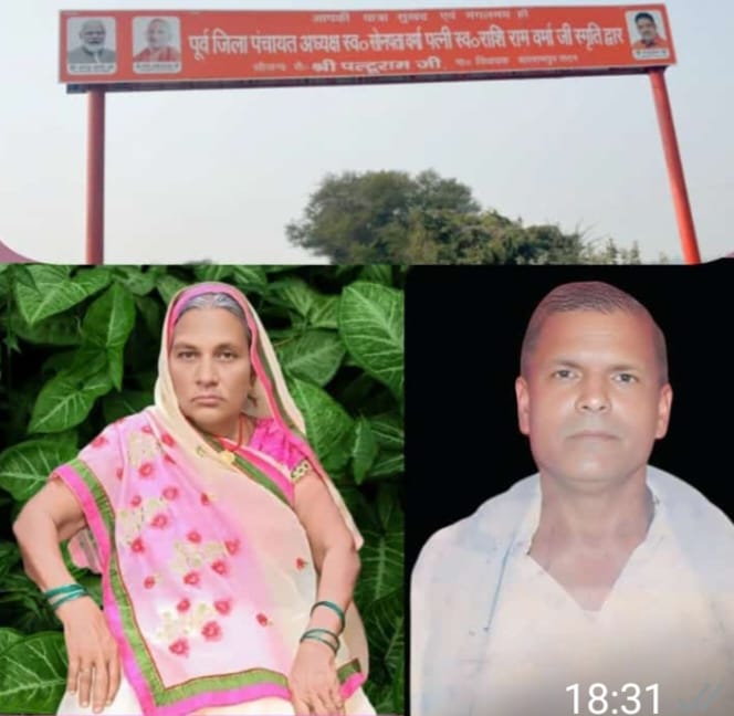 पूर्व जिला पंचायत अध्यक्ष सोनपता वर्मा पत्नी स्वर्गीय राशि राम वर्मा का लगवाया गया स्मृति द्वार