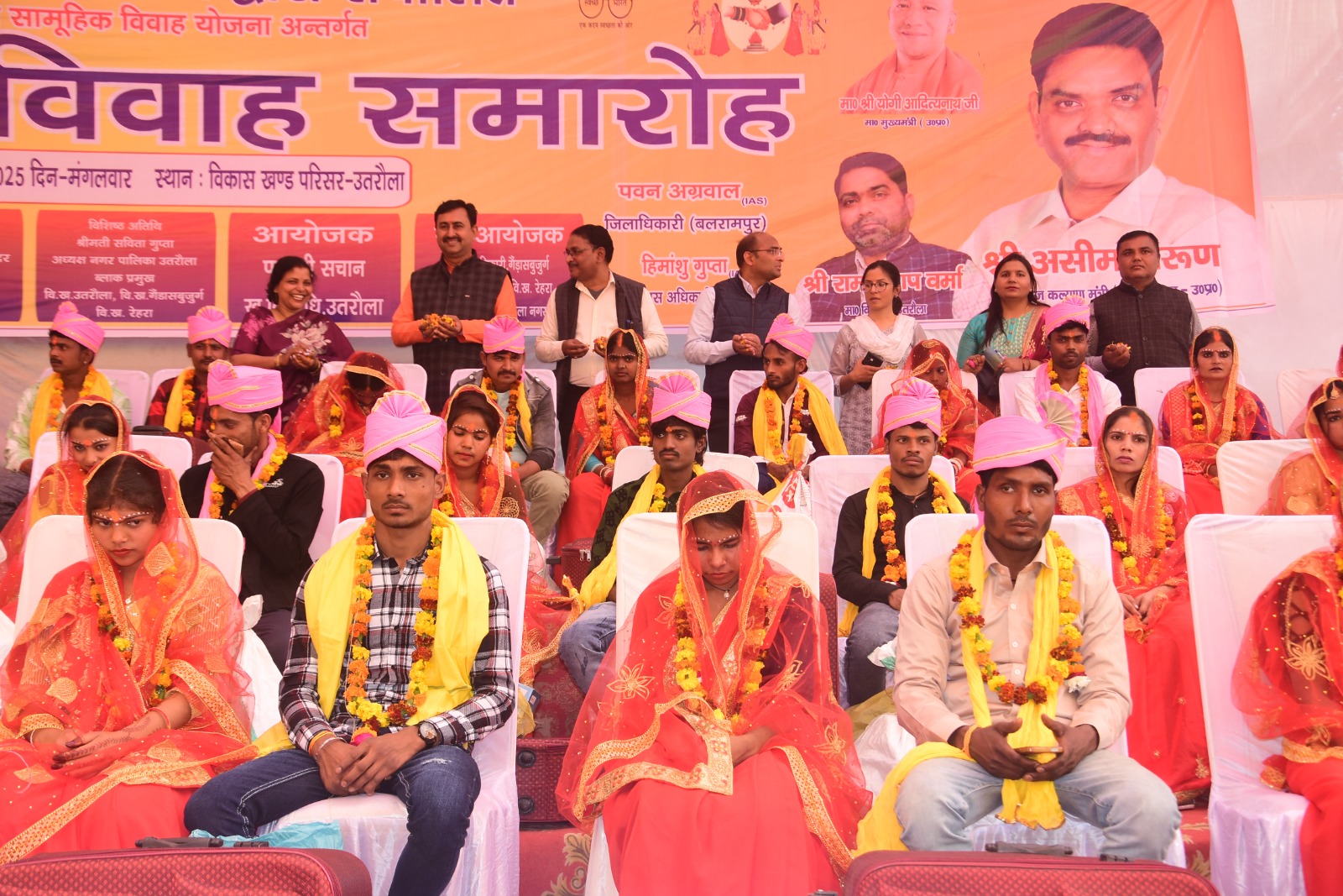 उतरौला बलरामपुर।मुख्यमंत्री सामूहिक विवाह योजनान्तर्गत जनपद में जिलाधिकारी पवन अग्रवाल के कुशल निर्देशन एवं मार्गदर्शन में विकास खंड परिसर उतरौला में दिनांक 18 फरवरी, 2025 को सामूहिक विवाह कार्यक्रम आयोजित किया गया। जिसमें विकास खण्ड उतरौला के 26 जोड़ों, विकास खण्ड रेहरा बाजार के 56 जोड़ों, विकास खण्ड गैण्डास बुर्जुग के 09 जोड़ों एवं नगर पालिका परिषद उतरौला के 02 जोड़ों कुल 93 जोड़ों का सामूहिक विवाह धार्मिक रीति-रिवाज के अनुसार सकुशल सम्पन्न कराया गया। जिसमें अल्पसंख्यक वर्ग के 11 जोड़े एवं अन्य वर्ग के 82 जोड़े सम्मिलित हुए।विकास खण्ड परिसर उतरौला में सम्पन्न कार्यक्रम में मुख्य अतिथि विधायक उतरौला के प्रतिनिधि, समस्त ब्लाक प्रमुख,अध्यक्ष, (प्रतिनिधि) नगर पालिका परिषद उतरौला, जनप्रतिनिधियों एवं जिला समाज कल्याण अधिकारी, खण्ड विकास अधिकारी उतरौला, रेहरा बाजार, गैण्डास बुर्जुग व अधिशाषी अधिकारी, नगर पालिका परिषद उतरौला एवं अन्य जनपद स्तरीय अधिकारीगण उपस्थित रहे। समस्त जनप्रतिनिधियों एवं अधिकारीगणों द्वारा सभी नव-दम्पत्तियों को आशीर्वाद देते हुए सुखद व मंगल वैवाहिक जीवन की कामना की गयी।