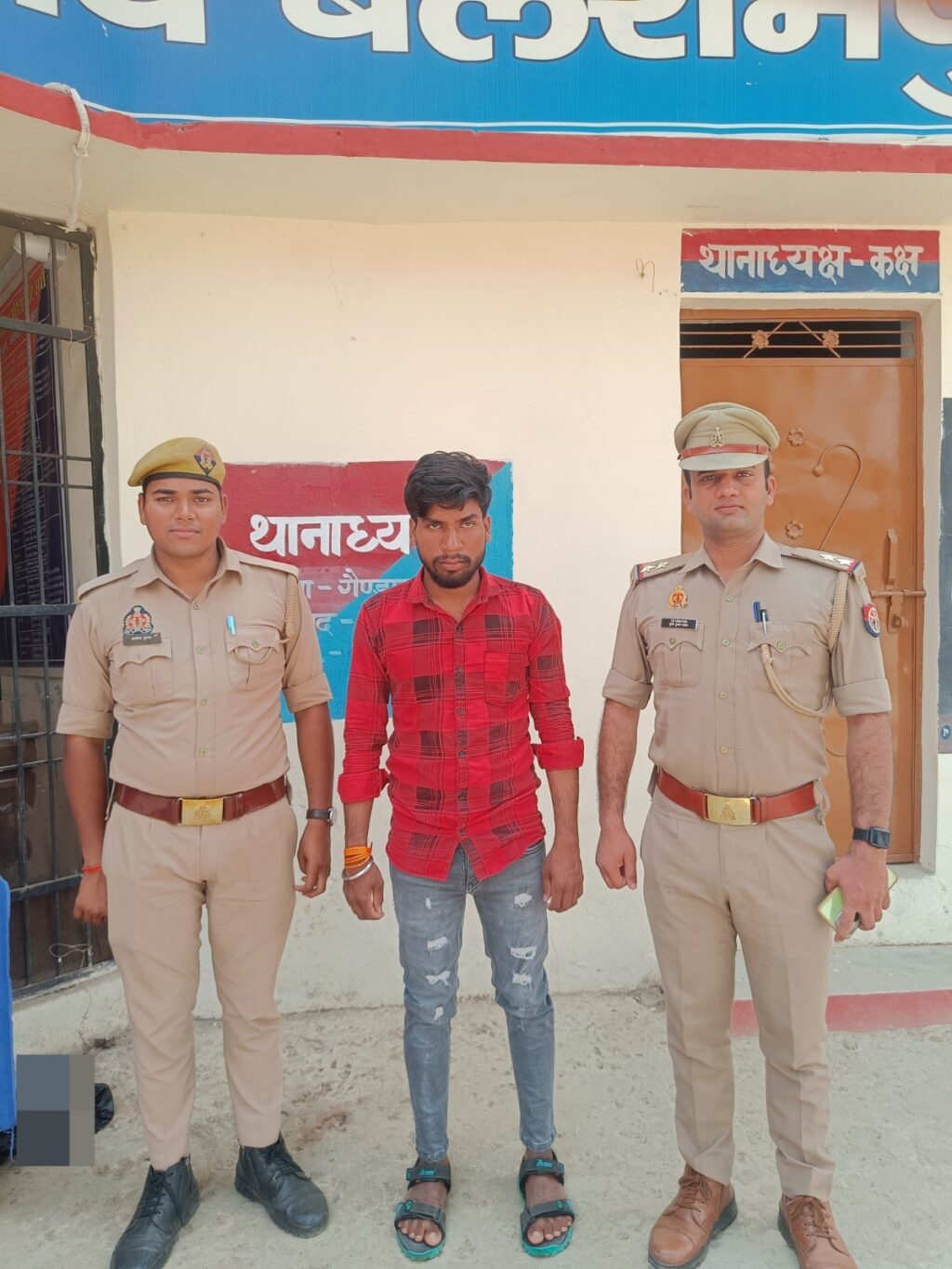 गैंडास बुजुर्ग बलरामपुर।पुलिस अधीक्षक महोदय बलरामपुर विकास कुमार द्वारा अपराध एवं अपराधियों पर अंकुश लगाए जाने हेतु चलाए जा रहे अभियान के क्रम में अपर पुलिस अधीक्षक दक्षिणी श्रीमती नम्रिता श्रीवास्तव व क्षेत्राधिकारी उतरौला राघवेन्द्र सिंह के पर्यवेक्षण में तथा थानाध्यक्ष गैंड़ास बुजुर्ग राजीव कुमार मिश्र के नेतृत्व में आज दिनांक 14.04.2025 को उप निरीक्षक शुभम यादव मय टीम के द्वारा थाना स्थानीय पर पंजीकृत मु0अ0सं0 35/2025 धारा 87, 137(2) बी.एन.एस. में वांछित अभियुक्त राज पुत्र रंगीलाल निवासी ग्राम मझौवा कुरथुवा थाना गैण्डास बुजुर्ग जनपद- बलरामपुर को गिरफ्तार कर न्यायालय रवाना किया गया ।