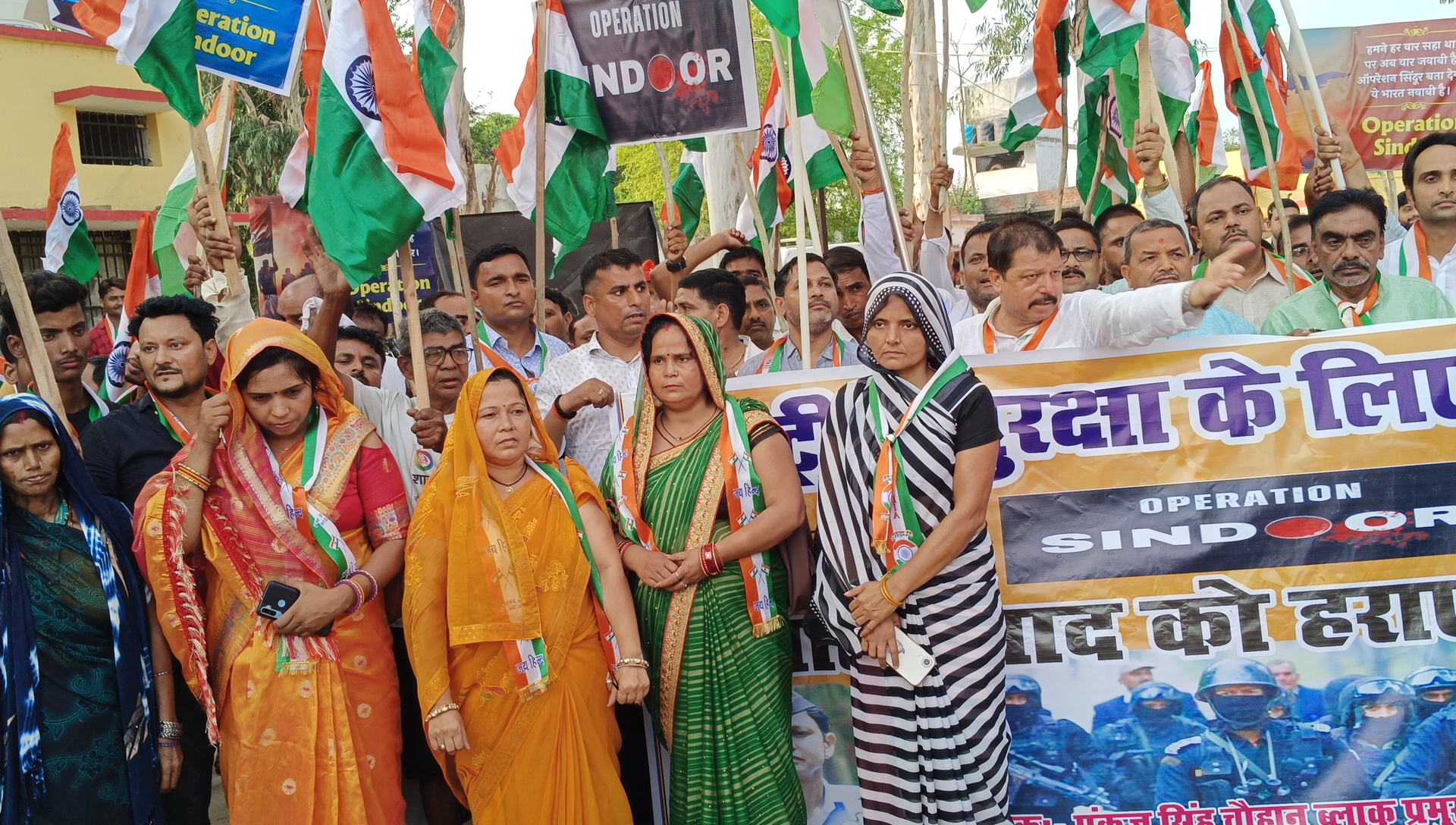 आपरेशन सिंदूर की सफलता पर तिरंगा रैली निकालते भाजपाई