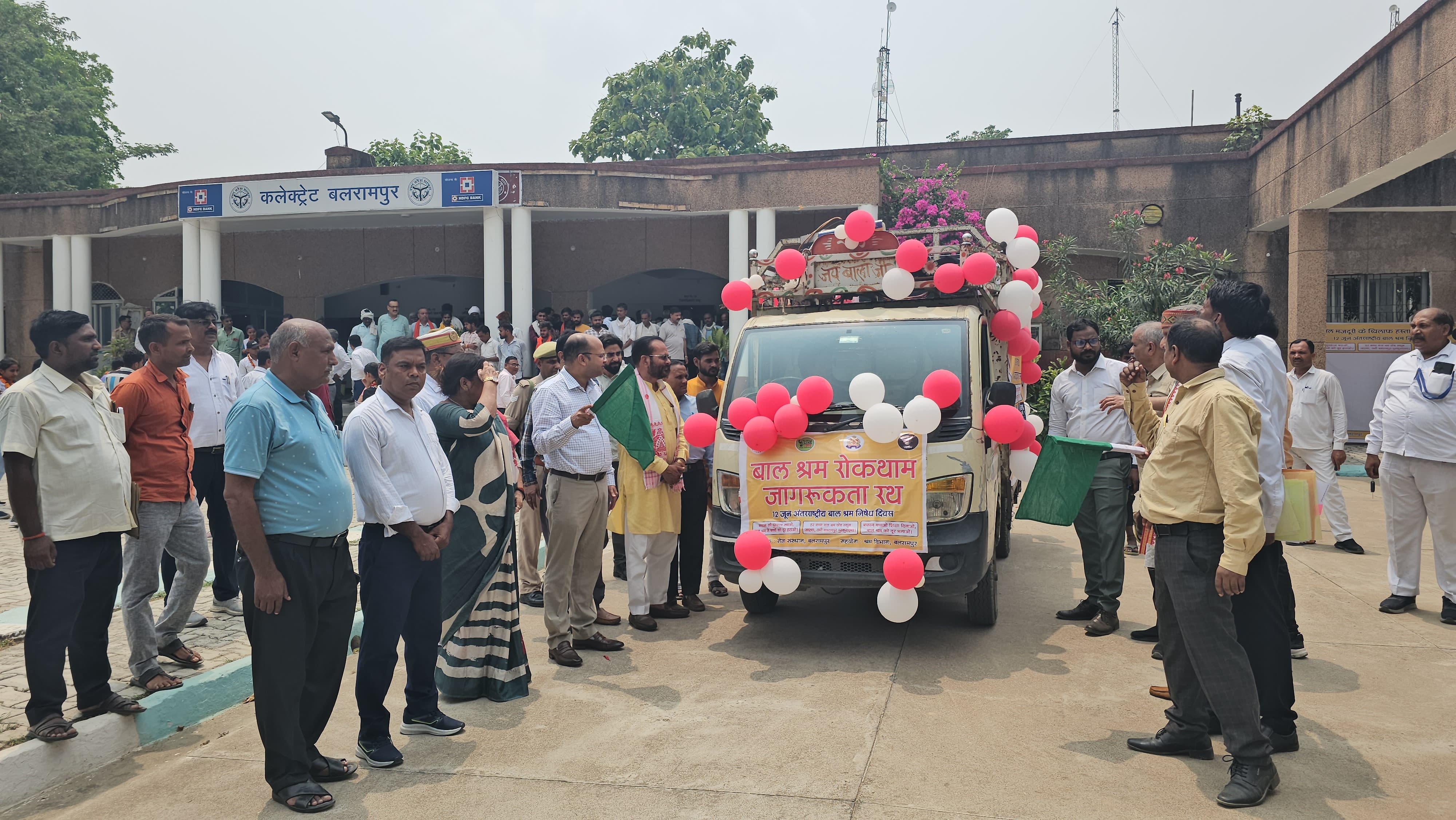 बलरामपुर।अंतर्राष्ट्रीय बाल श्रम निषेध दिवस पर जनपद में श्रम विभाग एवं गैर सरकारी संगठन द्वारा विभिन्न जागरूकता कार्यक्रम का आयोजन किया गया।इस अवसर पर कलेक्ट्रेट परिसर में विधायक तुलसीपुर कैलाश नाथ शुक्ल एवं डीएम पवन अग्रवाल द्वारा बाल श्रम निषेध जागरूकता रथ को हरी झंडी दिखाकर रवाना किया गया।जागरूकता रथ द्वारा विभिन्न स्थलों, रेलवे स्टेशन, प्रमुख बाजार विकासखंड आदि पर भ्रमण कर प्रचार प्रसार किया गया।अंतर्राष्ट्रीय बाल श्रम निषेध दिवस पर श्रम विभाग के साथ गैर सरकारी संगठन प्रोग्राम लीड, रोज संस्थान द्वारा बचपन बचाओ शिक्षा दिलाओ, पढ़ेगा भारत तभी तो बढ़ेगा भारत, हमारे गांव में श्रमिक बच्चे नहीं एवं स्कूल वापसी नया जीवन पर विभिन्न स्थानों पर जागरूकता कार्यक्रम आयोजित किया गया।इस अवसर पर विकास भवन परिसर में गोष्ठी का आयोजन हुआ गोष्ठी में जनमानस को बाल श्रम अधिनियम के बारे में विस्तृत जानकारी सहायक श्रम आयुक्त द्वारा दी गई।