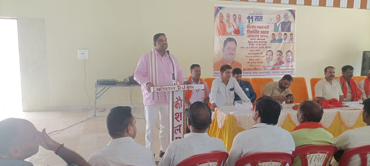 श्रीदत्तगंज, बलरामपुर। विकसित भारत संकल्प सभा का आयोजन 14 जून 2025 को आर जे मैरिज हॉल खरदौरी में आयोजन किया गया। कार्यक्रम में मुख्य अतिथि सदर विधायक पलटू राम रहे। सदर विधायक ने संबोधित करते हुए कहा कि सरकार कि योजनाओं को हर गरीब परिवार तक पहुंचाई जाए, सुकन्या योजना, जनधन योजना, किसान सम्मान निधि योजना, वृद्धा पेंशन, विकलांग पेंशन, आदि तमाम योजनाओं के बारे मे सभी उपस्थित कार्यकर्ता गण को जानकारी दी, कार्यकर्ताओं को बताया गया कि आप सब सभी जनमानस को जागरूक करें और सरकार के योजनाओं के बारे में सभी को जानकारी दे। इस मौके पर ओमप्रकाश त्रिगुणायक, प्रभात सिंह, ओमप्रकाश गुप्ता, रणविजय सिंह, विजेंद्र तिवारी, प्रवेश वर्मा, छठी राम यादव, नागेंद्र वर्मा, राघव राम वर्मा, राम फेरन चौहान, अनिल वर्मा, भीमसेन राजभर, विनोद गौतम, रोमी सिंह, दिनेश सिंह, अखिलेश सिंह एडवोकेट, अनुराग सिंह, रंजीत यादव, नंदकिशोर मिश्रा, रामदास, राम उजागर वर्मा समेत सैकड़ो कार्यकर्ता गण मौजूद रहे।