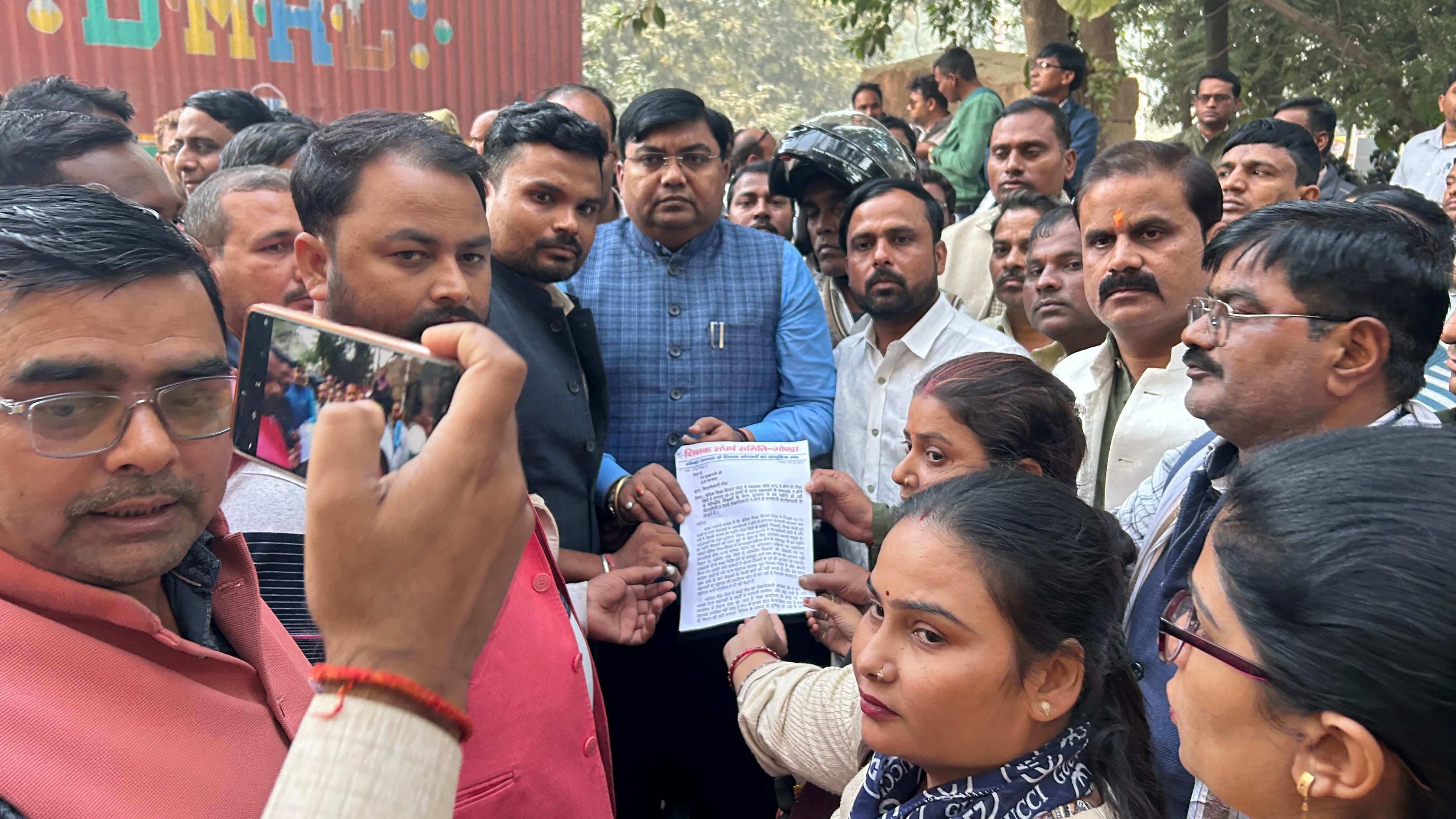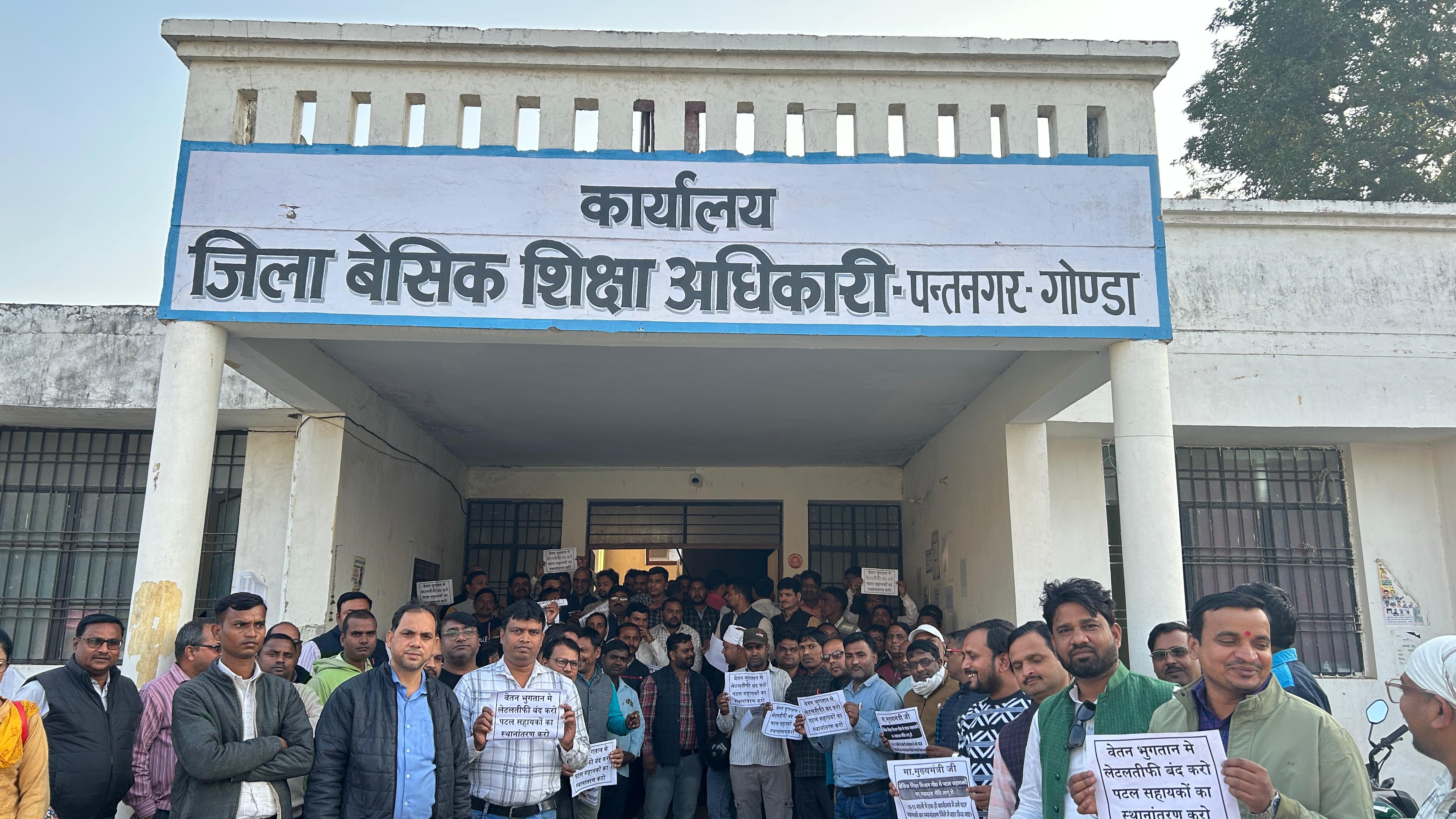 गोंडा में डीएम आवास के सामने शिक्षकों का प्रदर्शन