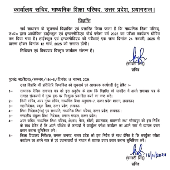 यूपी बोर्ड से जुड़ी सबसे बड़ी खबर, यूपी बोर्ड ने हाईस्कूल और इंटरमीडिएट परीक्षा का कार्यक्रम किया घोषित, 24 फरवरी...