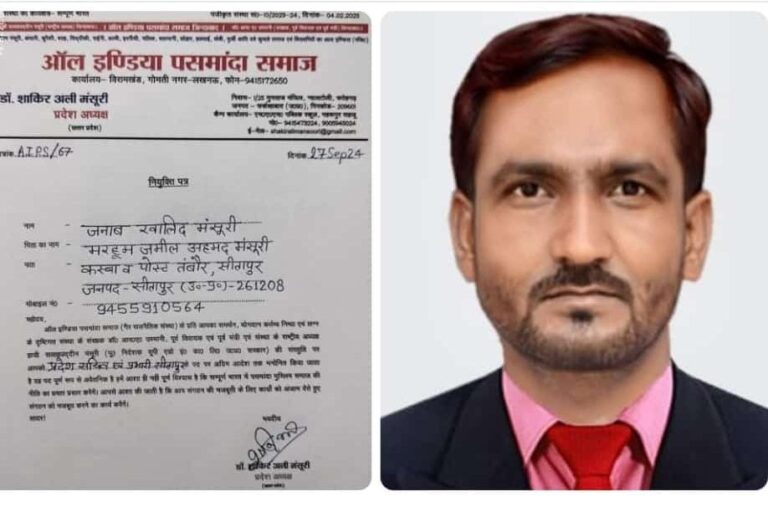 रिपोर्ट -सर्वेश कुमार भारती ऑल इंडिया पसमांदा समाज द्वारा सीतापुर जिला प्रभारी की भी दी गयी जिम्मेदारी तंबौर सीतापुर। ऑल...