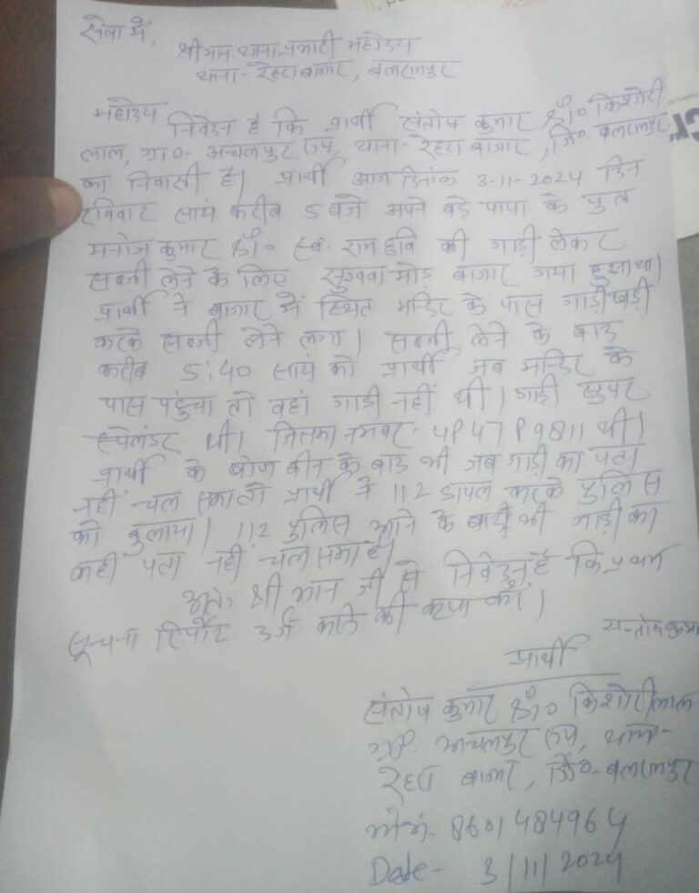 रिपोर्ट -ब्यूरो बलरामपुर बलरामपुर।दिनांक 02.11.2024 को आवेदिका सरवरी बेगम द्वारा थाना कोतवाली उतरौला पर मु0अ0सं0 234/2024 धारा 419/420/467/468/471 भा0दं0वि0 पंजीकृत...