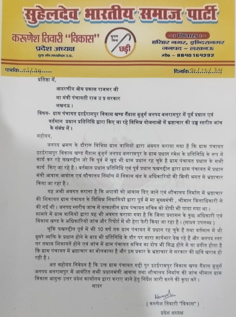 संवाददाता - पवन गुप्ता सादुल्लानगर/बलरामपुर। बलरामपुर जनपद के अंतर्गत ग्राम पंचायत इटई रामपुर में लगातार भ्रष्टाचार हो रहा है जबकि...